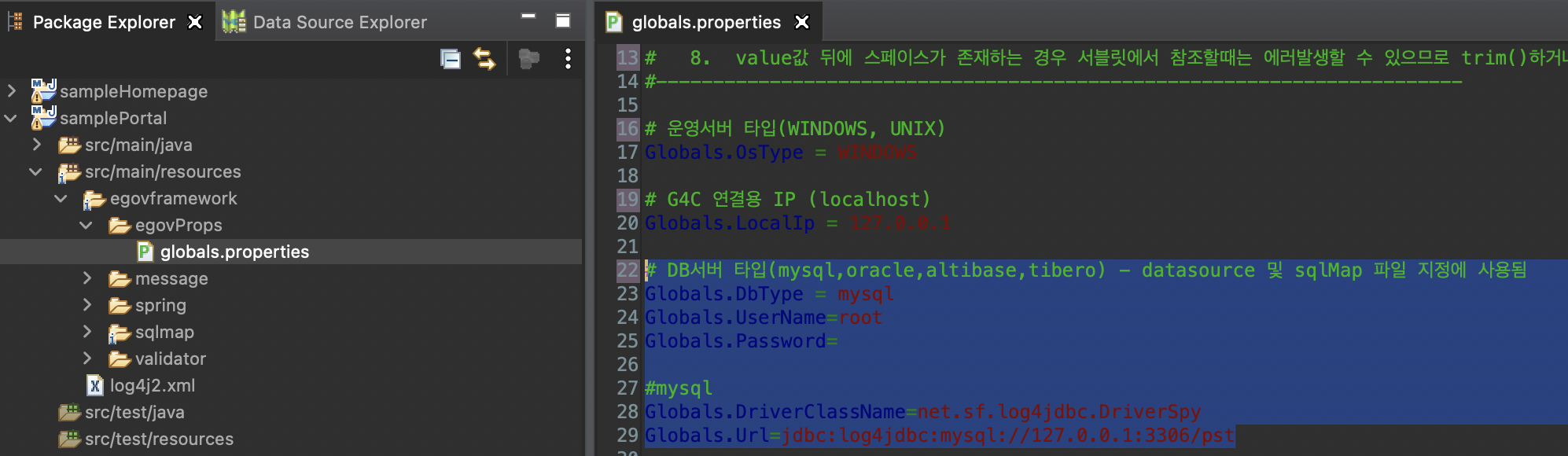 프로젝트 - src/main/resources - egovframework - egovProps - globals.properties 파일