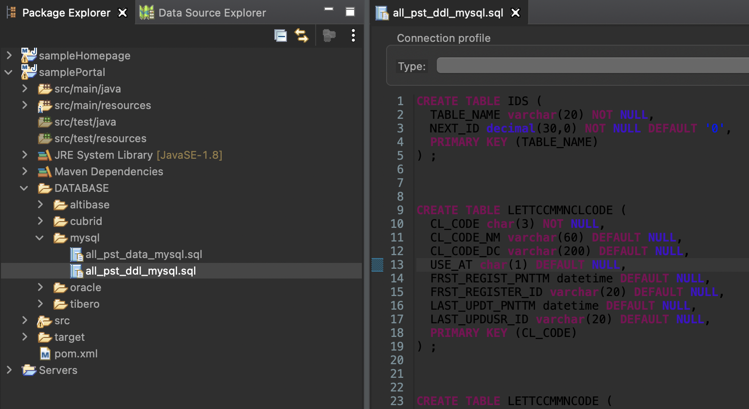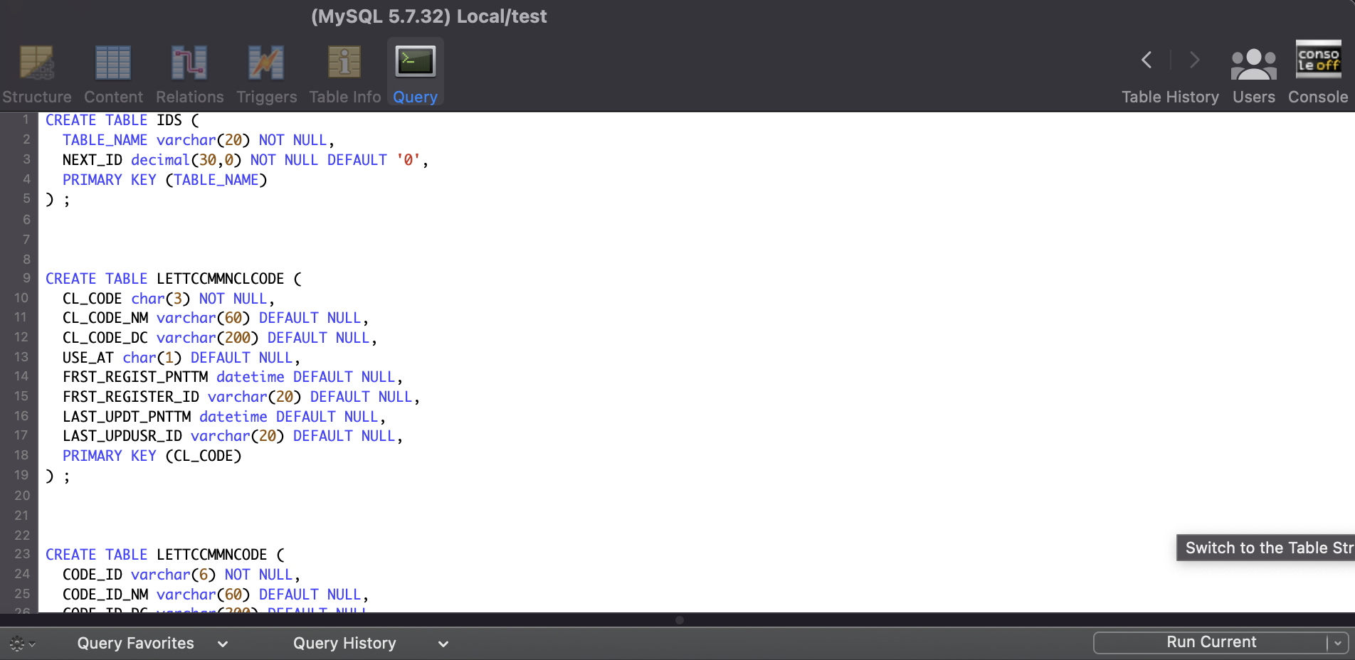 본인이 쓰고 있는 프로그램이나 터미널에서 all_pst_ddl_mysql.sql 을 실행하여 테이블들을 만든다.