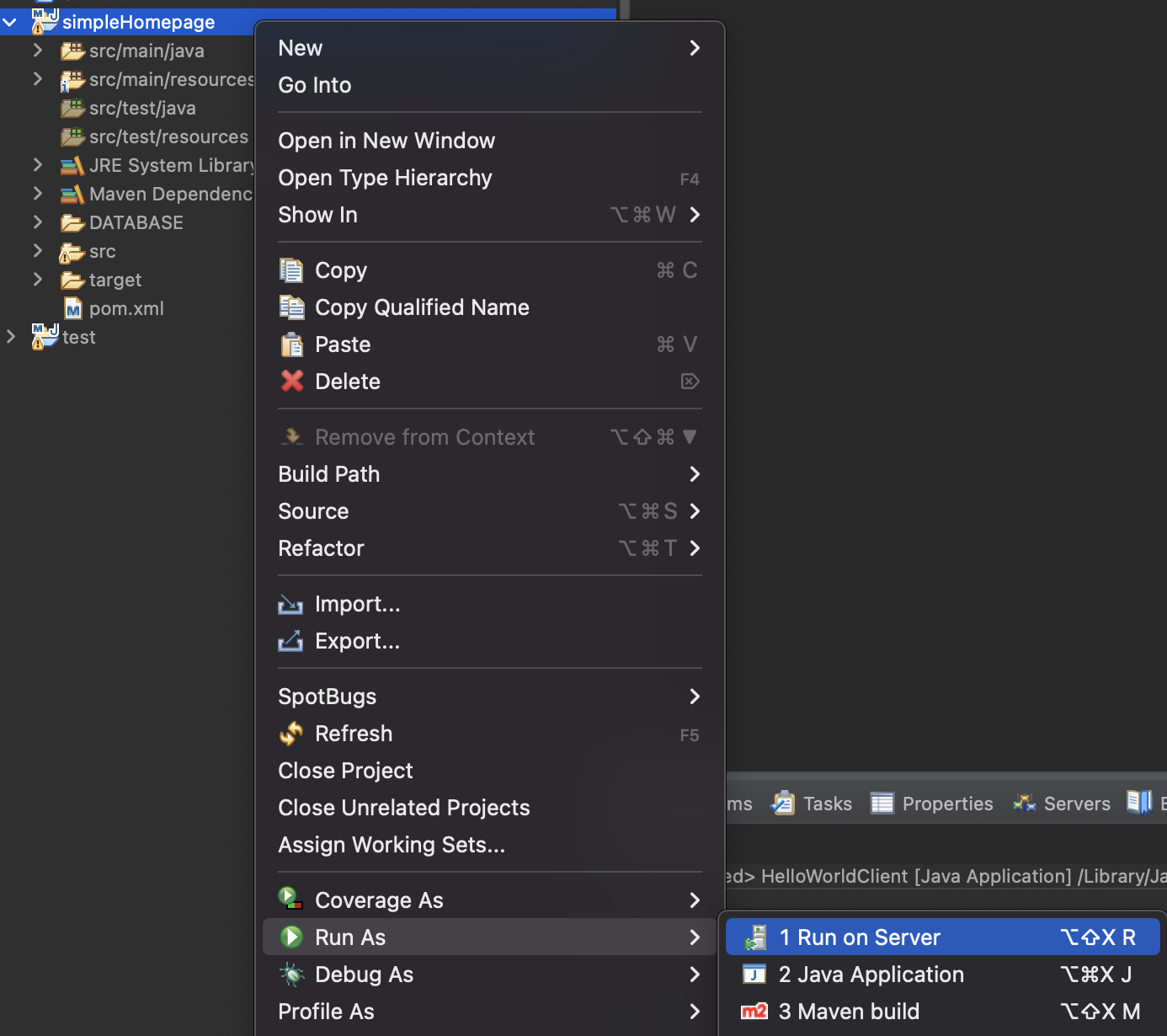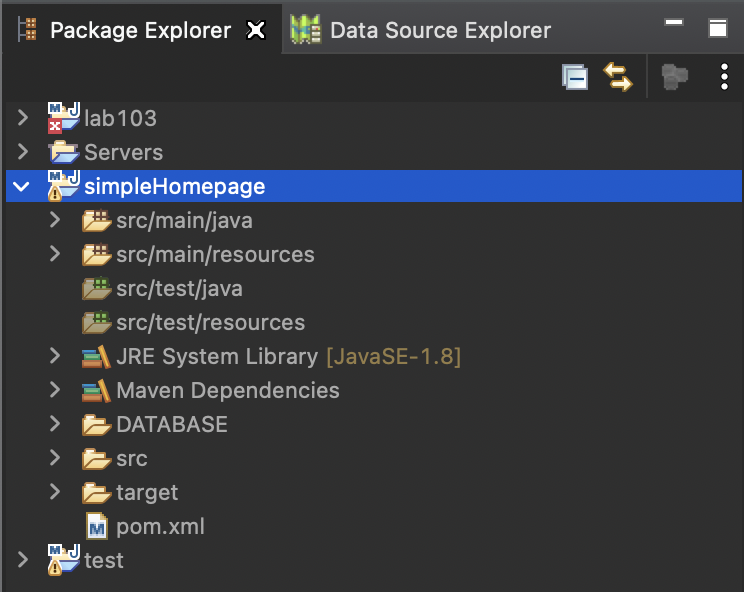 simpleHomepage 프로젝트가 생성된걸 볼수 있다.