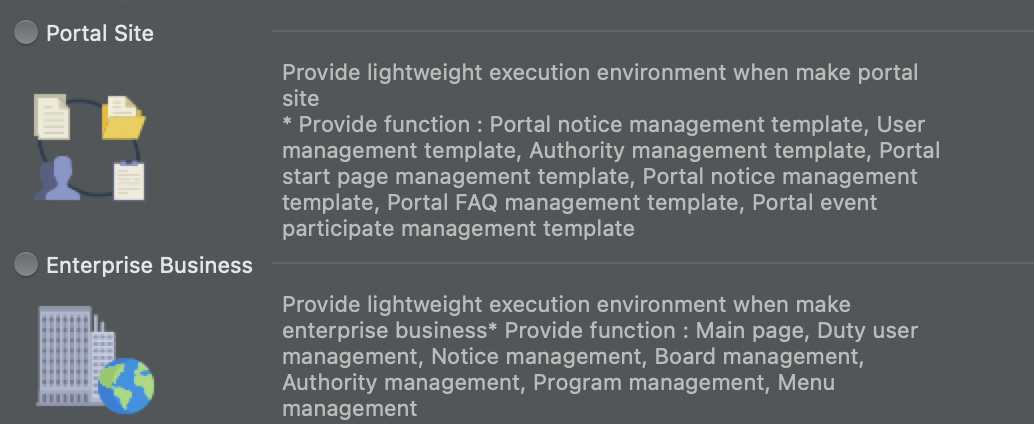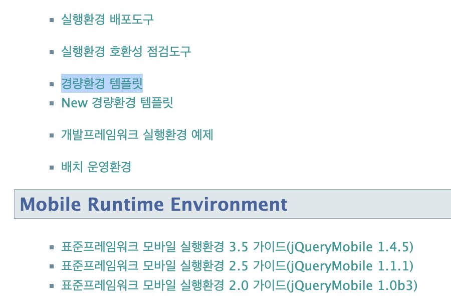 경량환경 템플릿은 공통컴포넌트를 사용하여 기본기능을 구성하였고, 총 3종류가 있다.