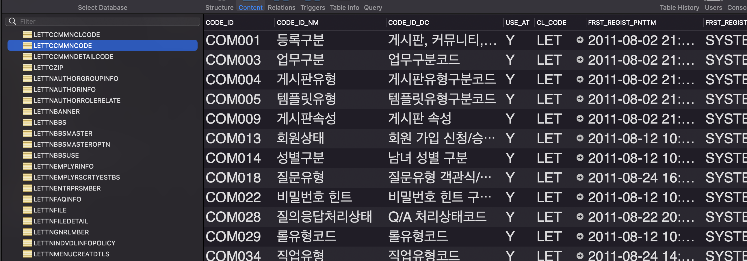 그럼 아래처럼 생긴 테이블들을 볼수 있다.