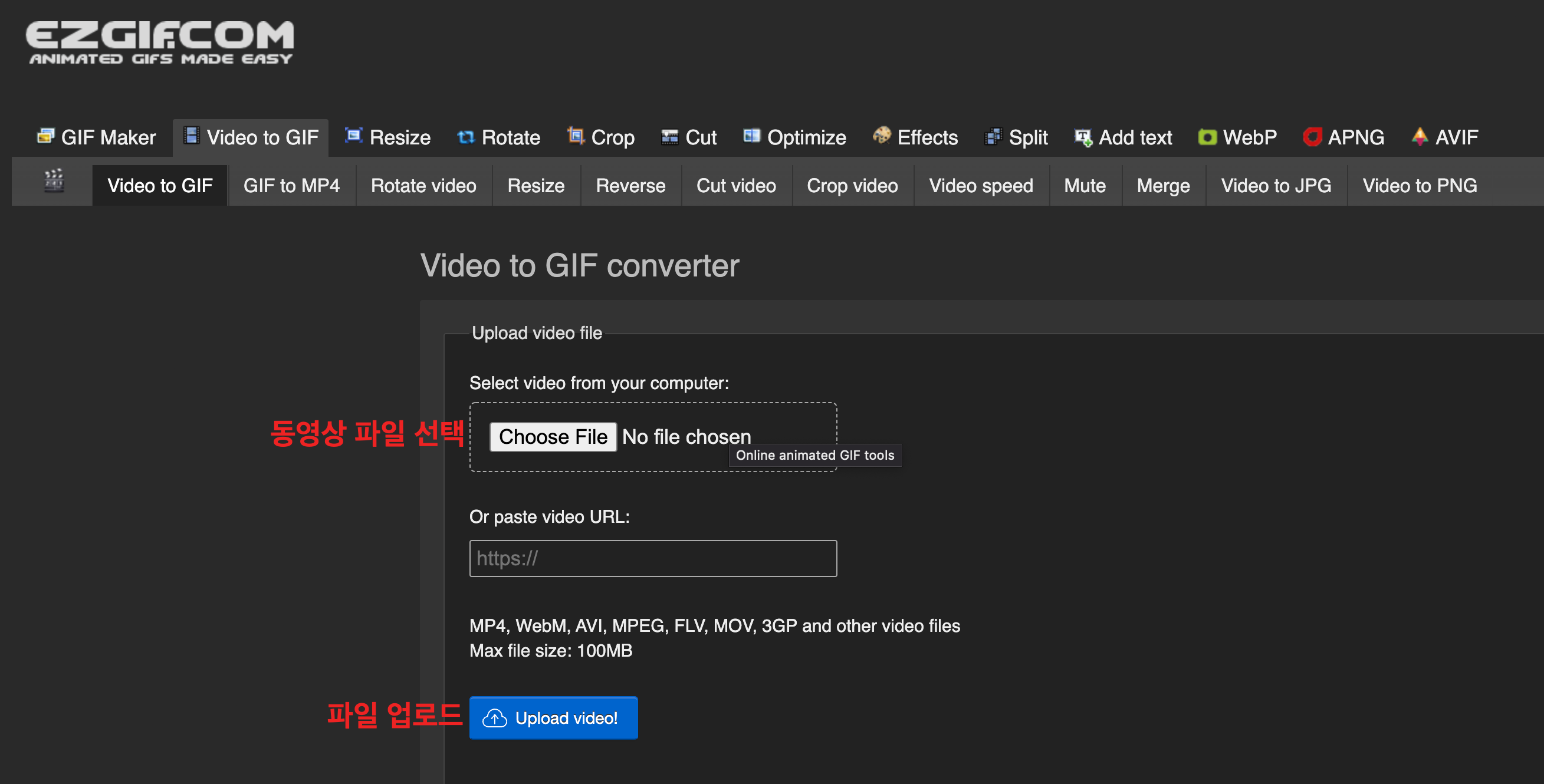 동영상으로 부터 움직이는 GIF를 만들려면 위 싸이트를 이용한다.