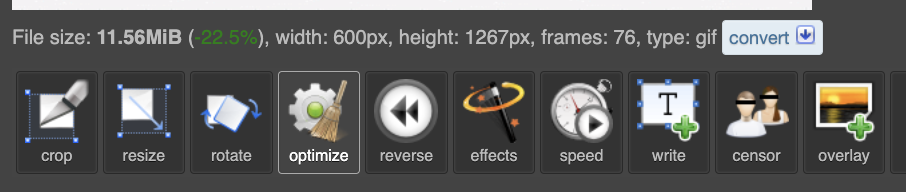옵티마이즈를 하고나니 용량이 좀 줄었다. (대신 프레임수도 줄었다)