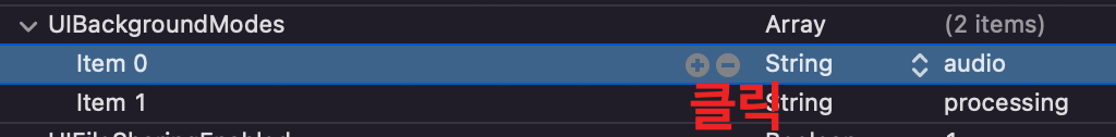 Plist에서 audio를 선택하고 마이너스(-)버튼을 눌러서 제거하니 Signing & Capbilities에서도 같이 제거된것이 보인다.