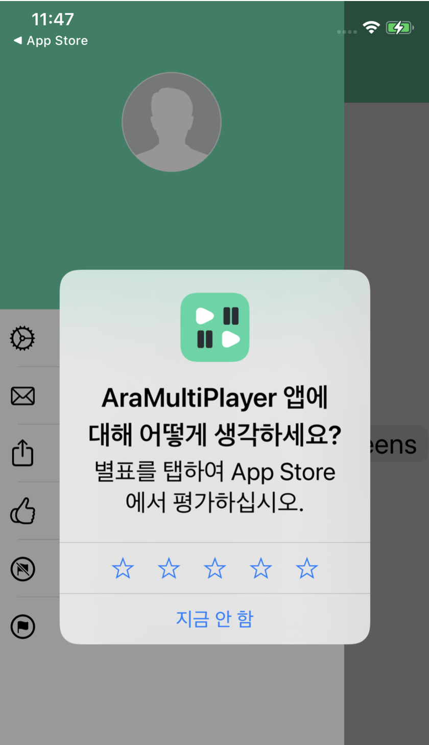 앱에서 "앱 리뷰" 메뉴를 누르면 아래처럼 별점 주기 를 보여줄려면 아래 코드를 호출하자.