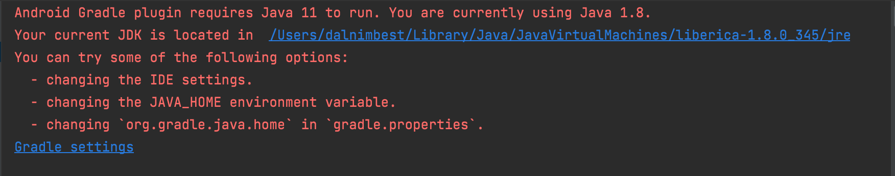 [안드로이드 오류수정] Android Gradle plugin requires Java 11 to run. You are currently using Java 1.8. 본문