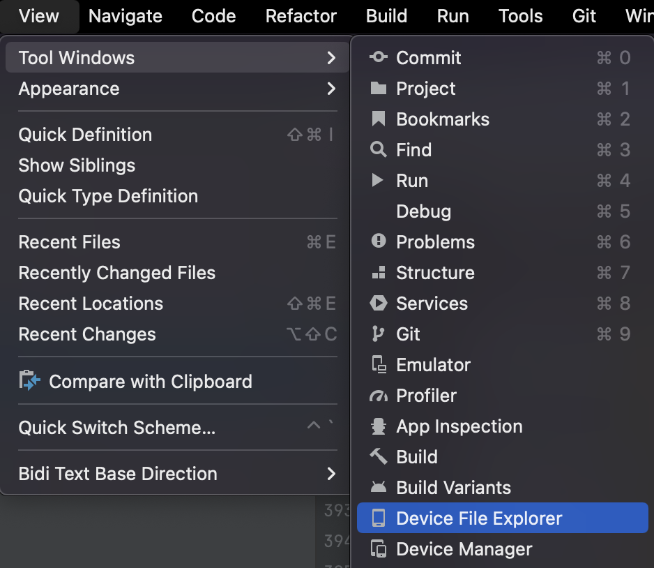 안드로이드 스튜디오의 Device File Explorer로 보면