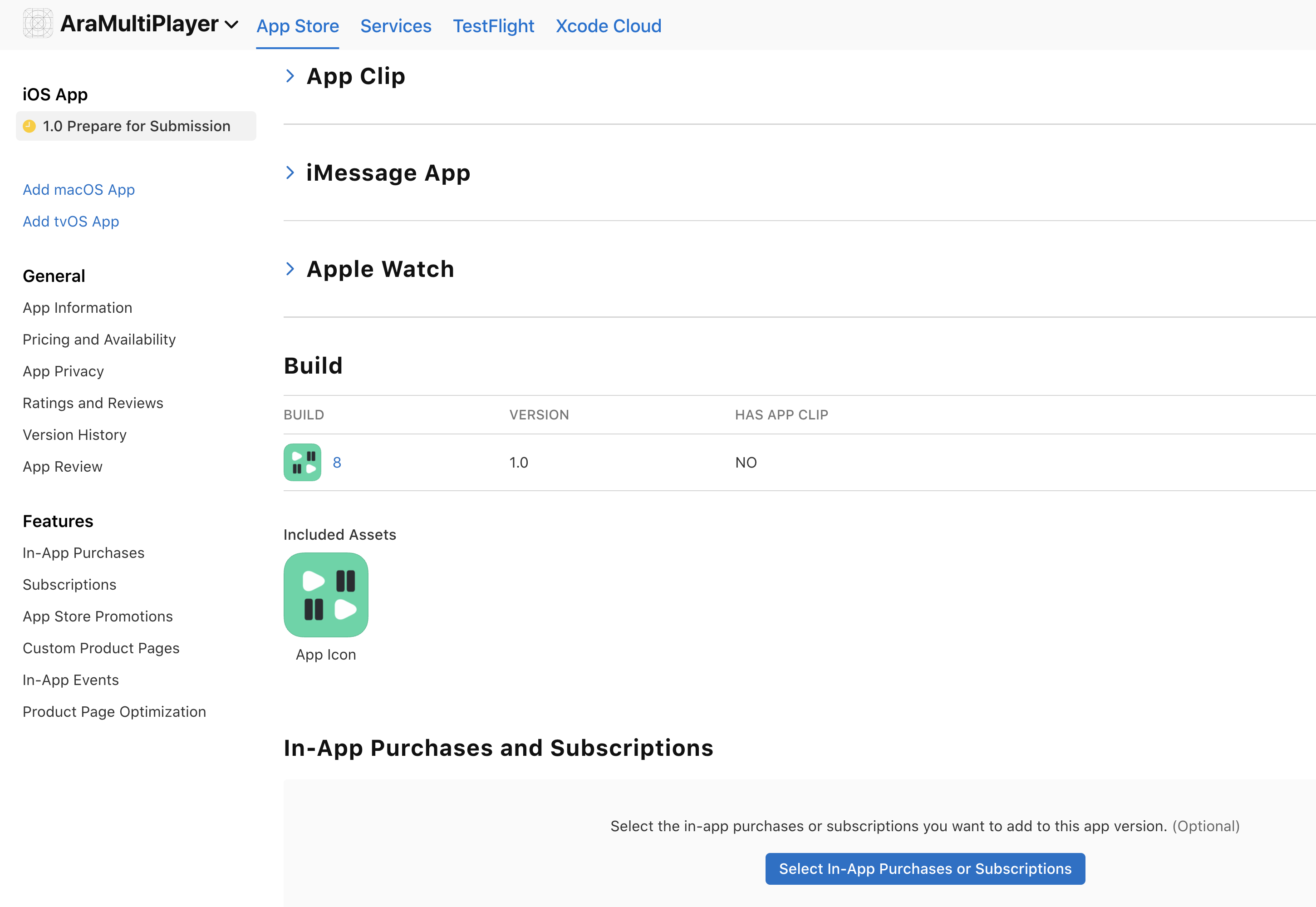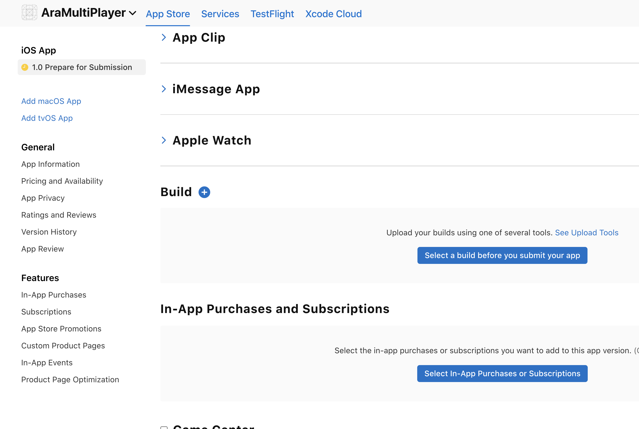 다시 App Store탭으로 와보면 Select a build버튼이 보인다.