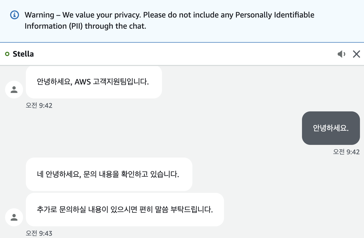 잠시 기다리라고 메시지가 나오는데, 한 5분정도 기다리니 고객지원 담당자가 연락이 와서 궁금한거 문제 해결했다.