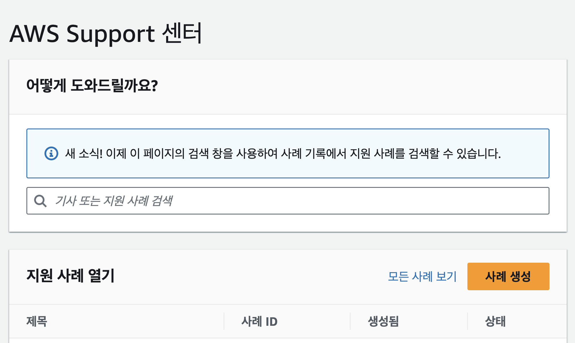 AWS에서 문의할 내용이 있었는데, 메뉴 찾기가 좀 힘들어서 여기에 적어둔다.