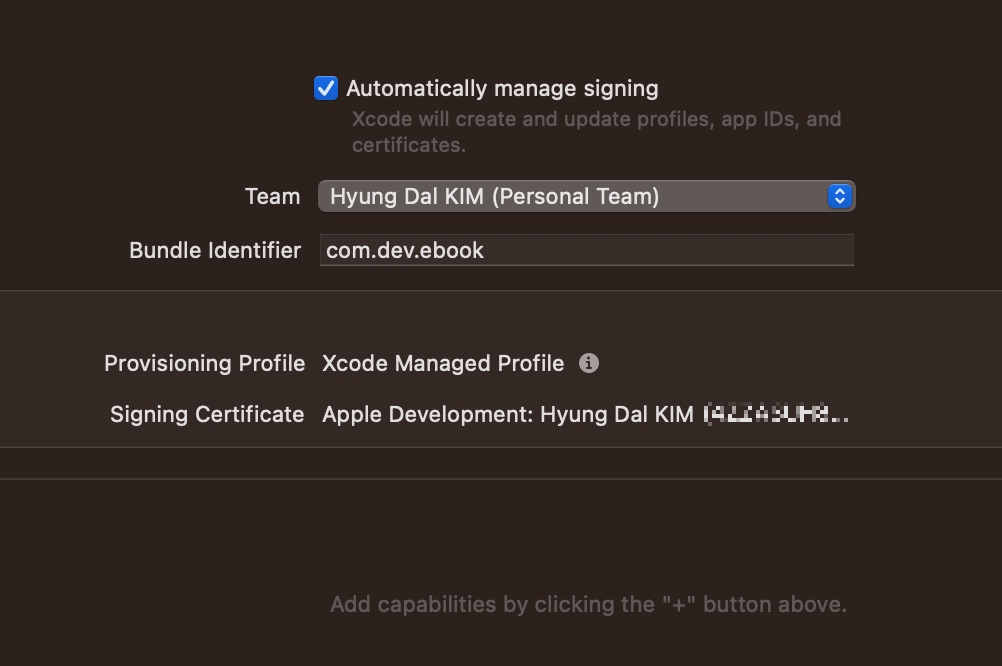 이걸 내 팀으로 바꾸면 자동으로 Provisioning profile을 받아온다.