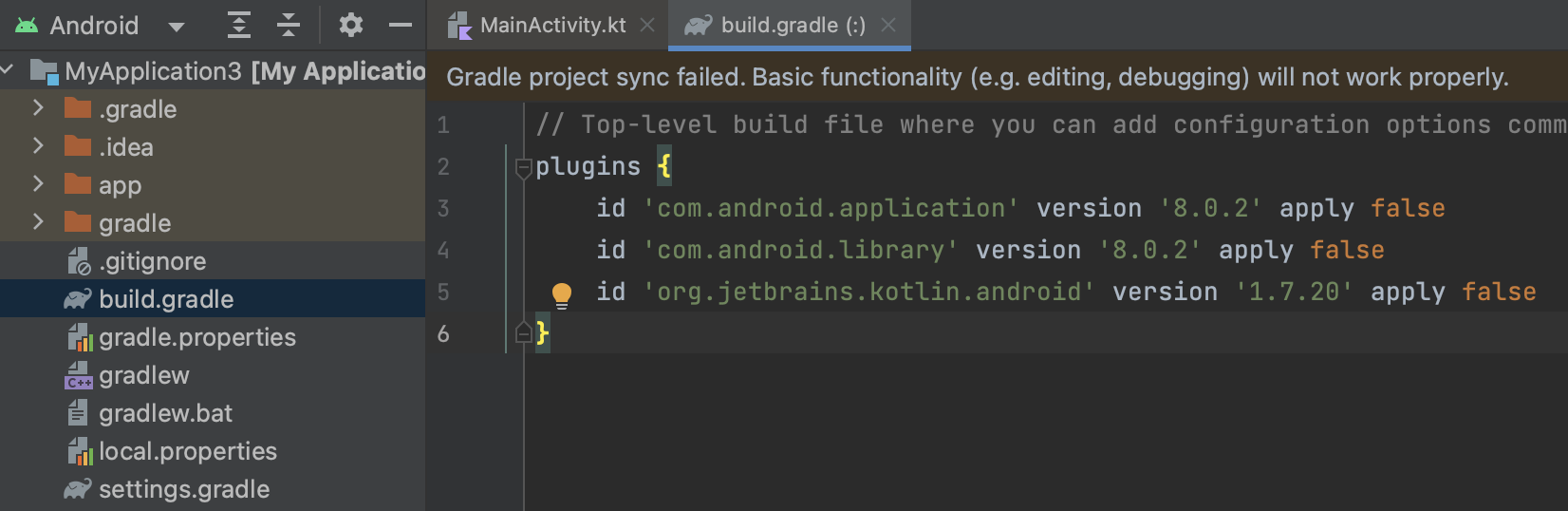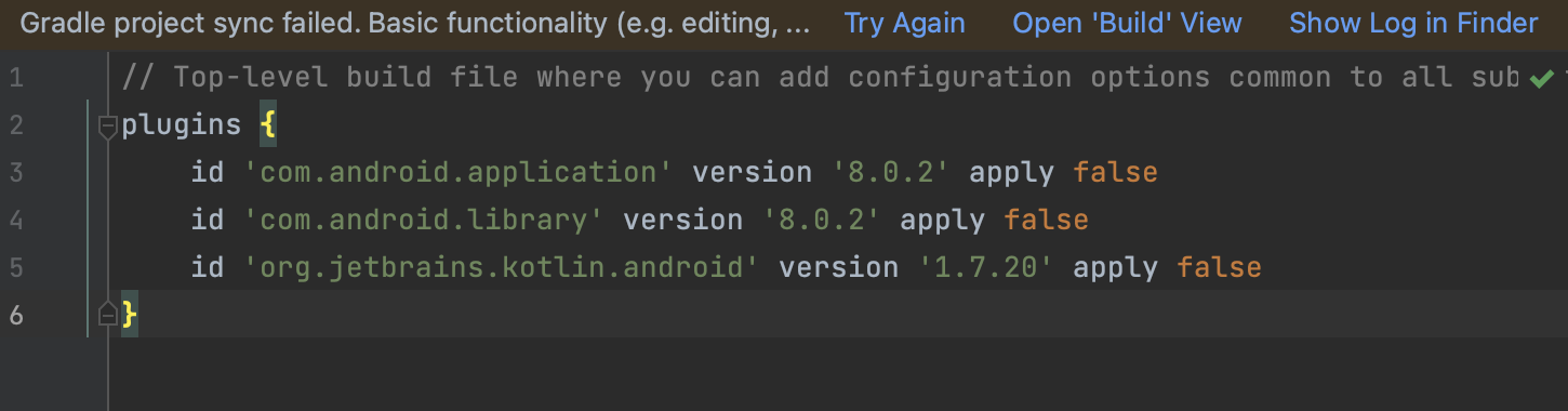 id 'org.jetbrains.kotlin.android' version '1.7.20' apply false