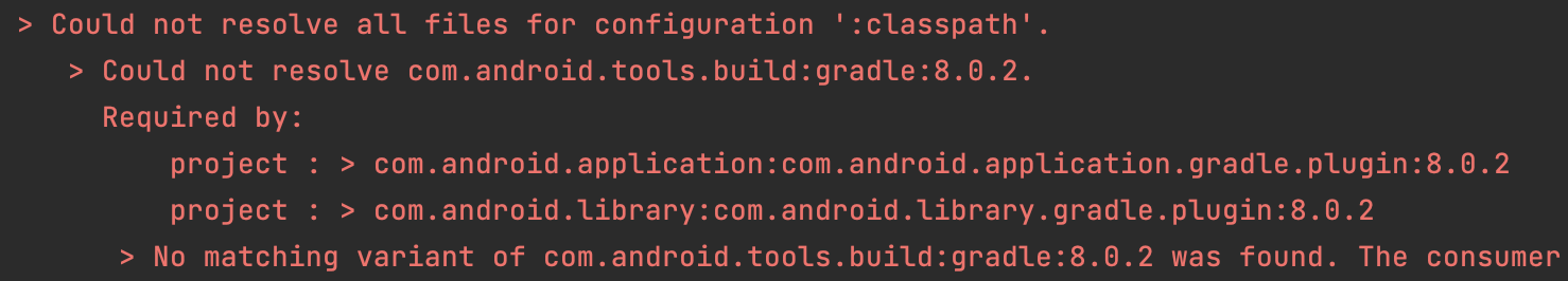 > Could not resolve com.android.tools.build:gradle:8.0.2.