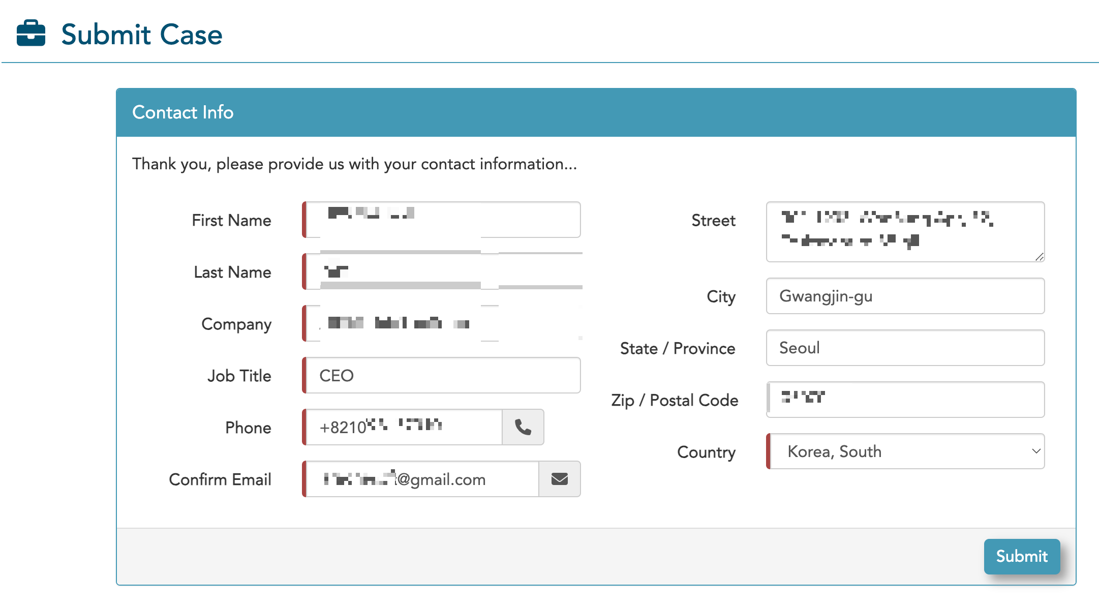 접수가 끝났다고 아래처럼 접수번호(Case)를 알려준다. 또 메일로도 온다.