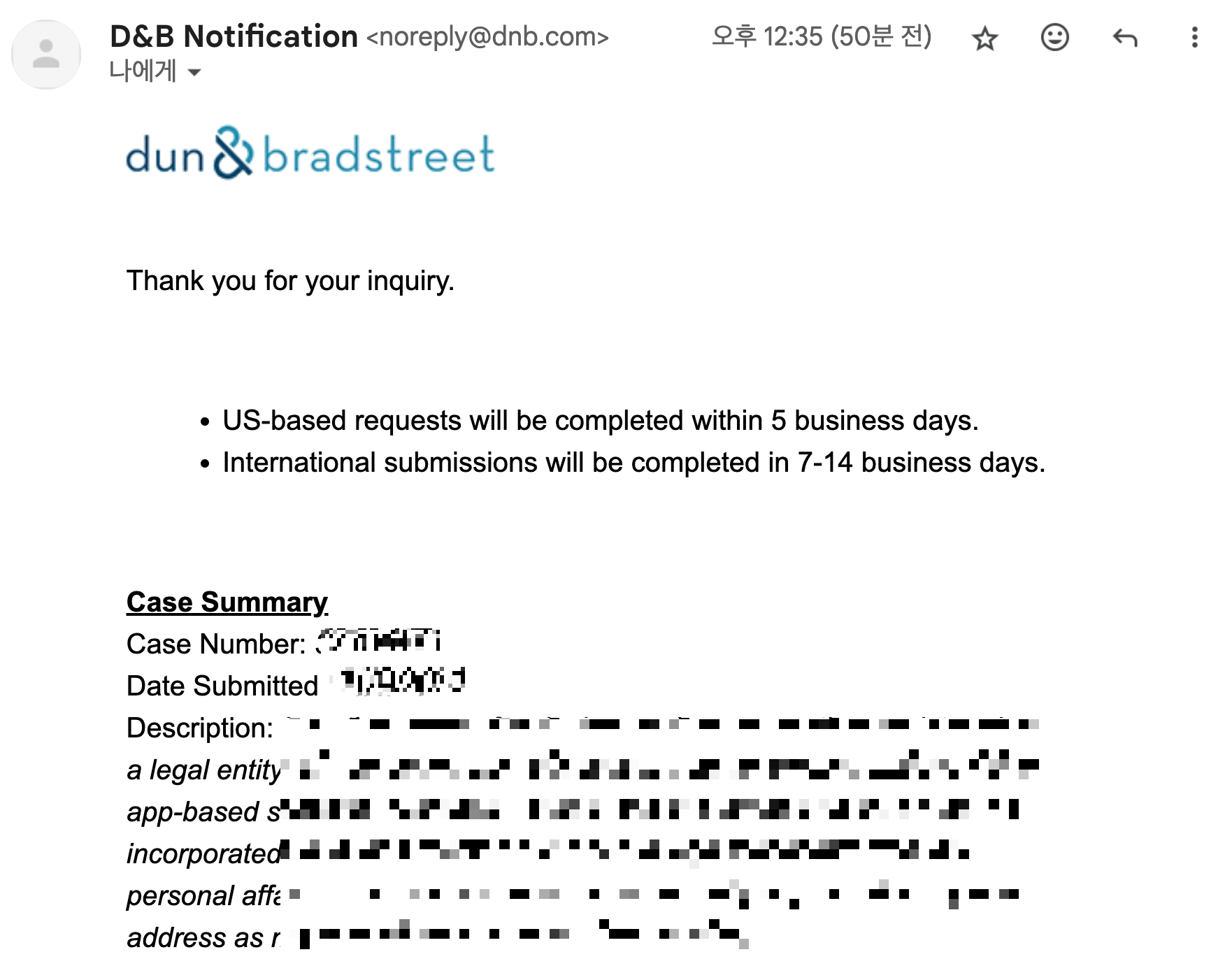 단 DUNS번호를 사용할려면 24~48시간 뒤에 사용 하라고 한다.
