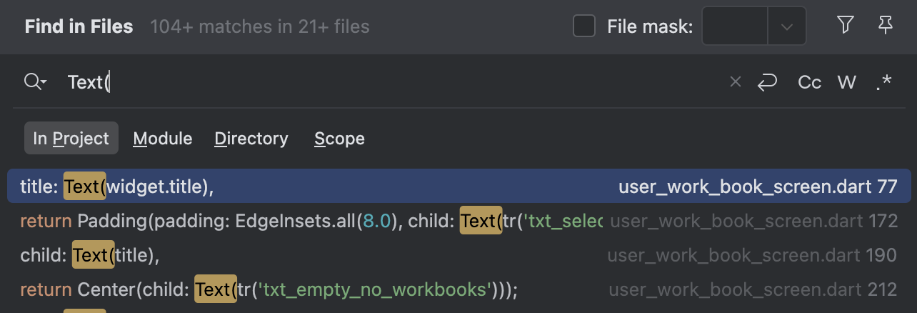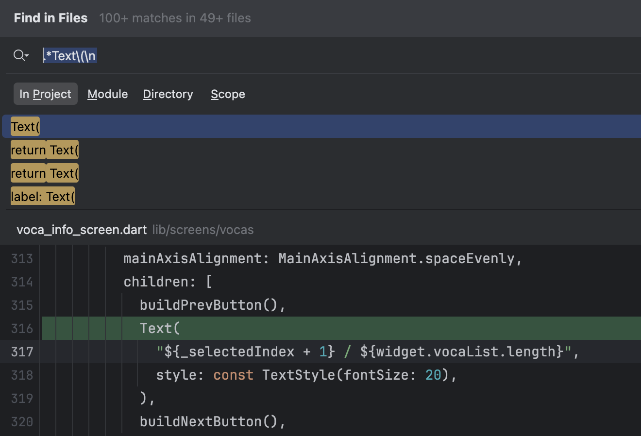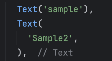 플러터 앱을 메뉴를 로컬라이징 할려고 대상을 찾고 있는데, 안드로이드 스튜디오에서 아래처럼 Text위젯과 같은 줄에 글자가 있는경우도 있고, 아래줄에 글자가 있는 경우가 있다.