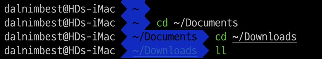 두줄중 밑줄은 기본적으로 "> "를 보여주고 git 폴더일때는 "git:(브랜치명)> "를 보여준다.