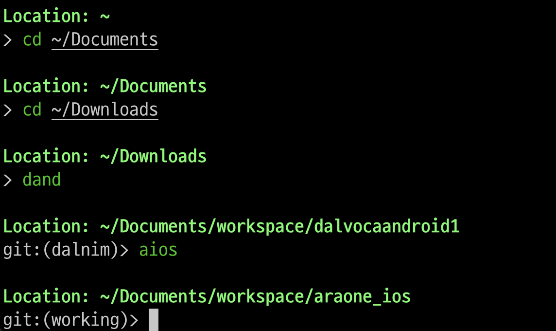 alias aios="cd ~/Documents/workspace/araone_ios"