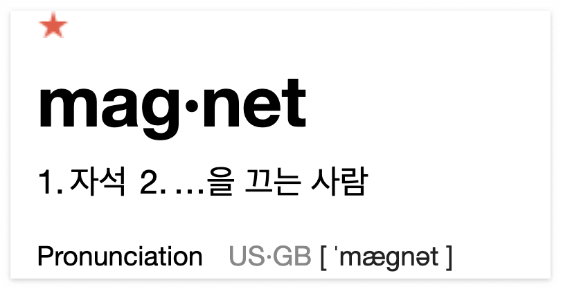 영어 발음기호를 보면 알겠지만, "매그넛"이라 발음한다. (하지만 마그넷이라 발음하는 사람도 많다)