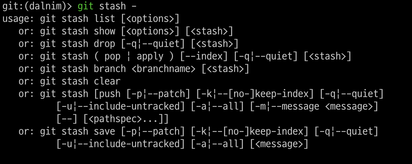 > git stash - 로 stash관련 명령어를 볼수 있다