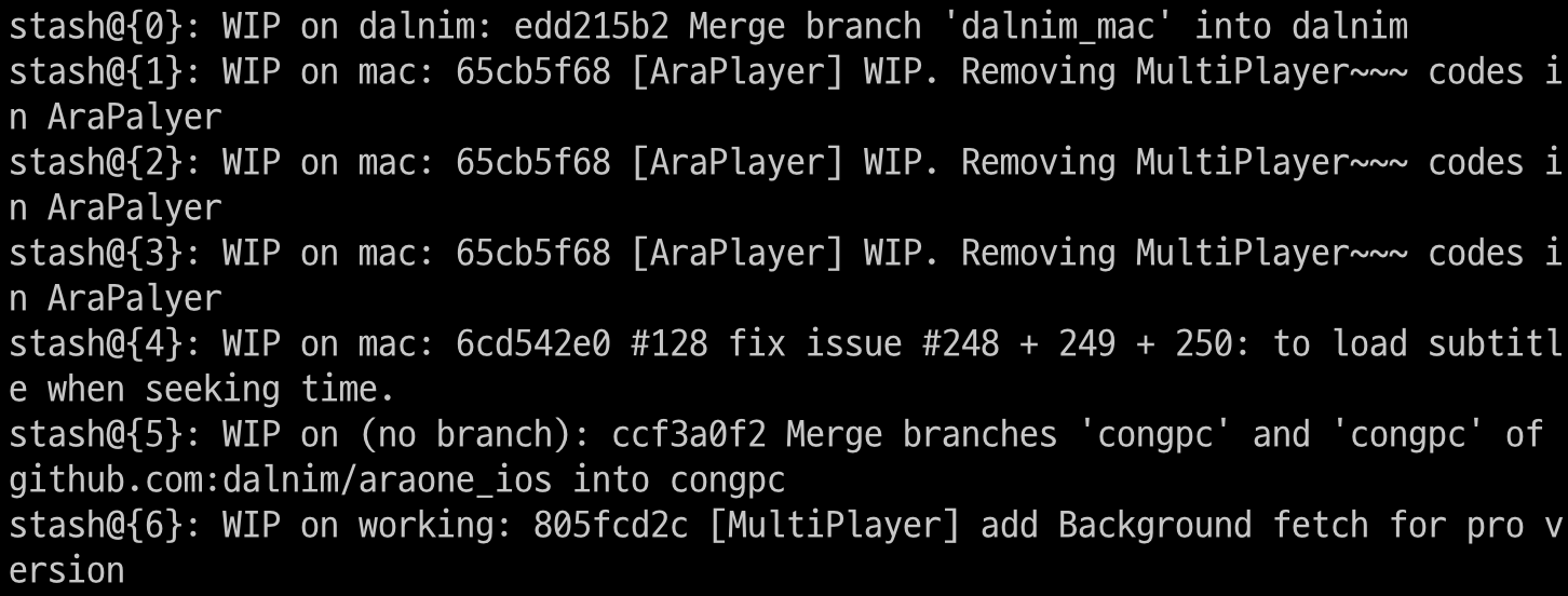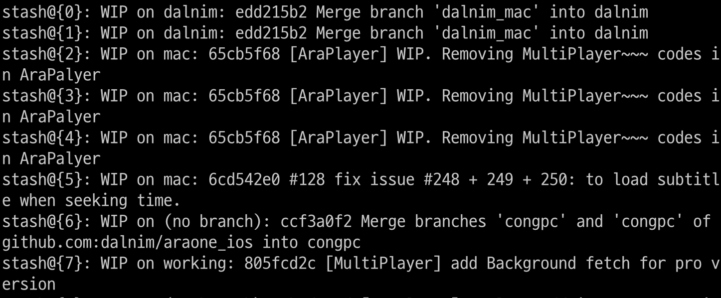 > git stash list 를 치면 임시 저장된 리스트가 나온다. 맨위가 최신 데이타이다.