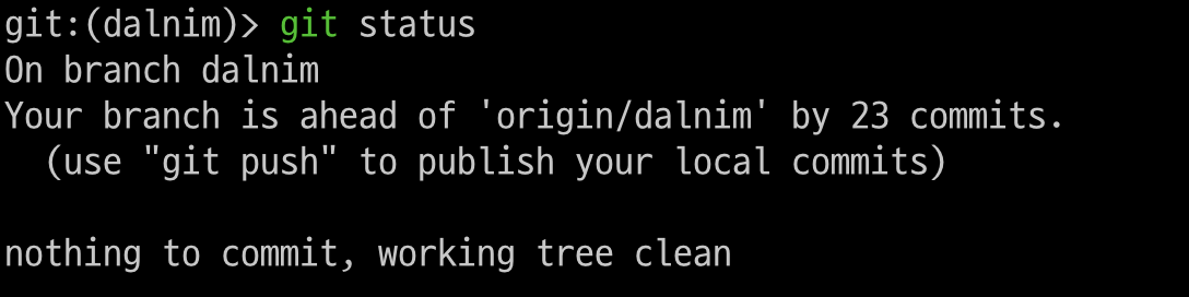 임시저장한후에 status로 보면 Commit할게 없다고 나온다.