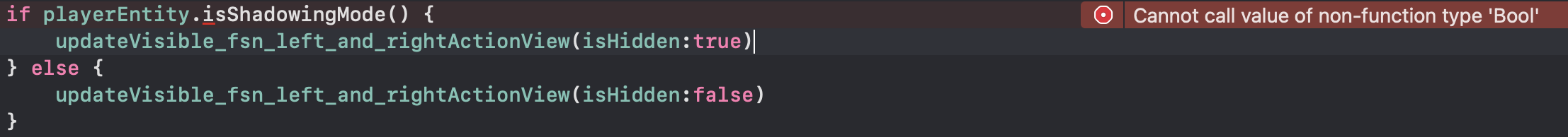 [iOS오류수정] Cannot call value of non-function type 'Bool'
